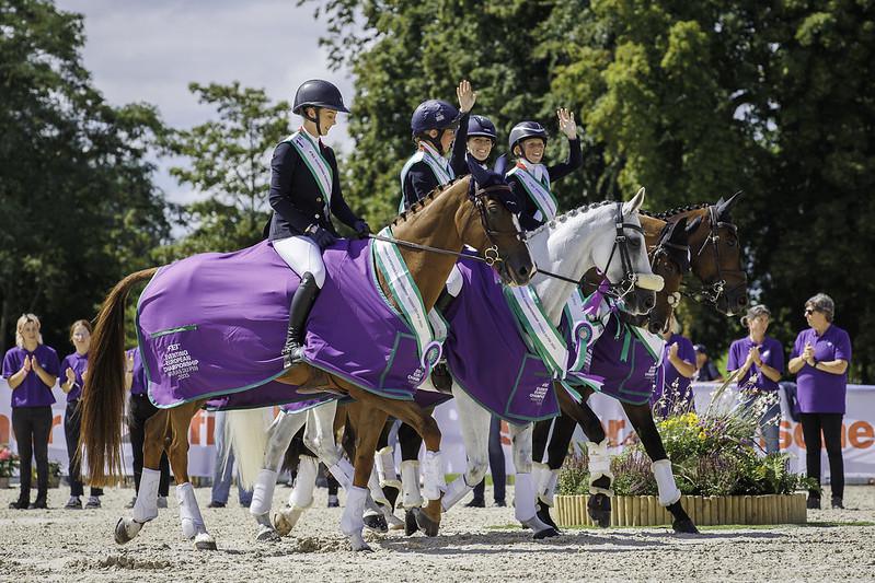 Et la pression, les Tricolores ont su la gérer ! Les trois couples Nicolas Touzaint/Diabolo Menthe, Karim Florent Laghouag/ Embrun de Reno (Eliott MC, Kwpn) et Jean-Lou Bigot/ Utrillo du Halage (Kara du Halage) sont tous sortis sans faute de l’épreuve, sans le moindre point de temps dépassé ! Ils restent ainsi sur le score qu’ils affichaient après le cross : 97,8 points, et s’emparent avec une jolie avance de la victoire. Sur la deuxième marche du podium, où ils se trouvaient après le dressage mais dont ils étaient descendus après le cross, montent les Britanniques, grâce aux bons parcours de Rosalind Canter/MHS Seventeen (Callahan, Han) et de Laura Collett/ Dacapo (Diarado, Holst), troisième et sixième en individuel. La Belgique perd une place par rapport hier, avec un score alourdi à l’hippique, malgré le beau parcours à deux points de Lara de Lindekerke et Ducati d’Arville (Diarado, Holst), qui finissent deuxièmes en individuel, derrière Nicolas Touzaint.
