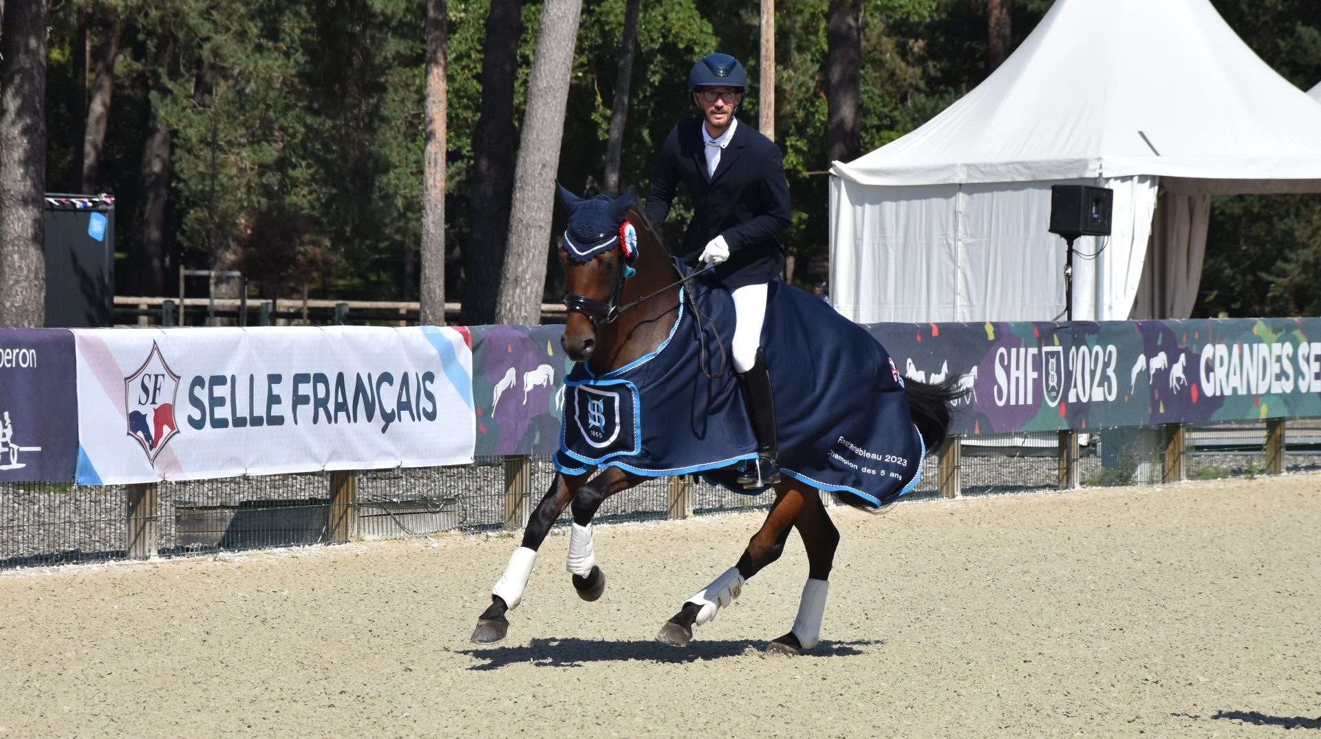 Ce sacre est, pour Nespresso et Charles Edouard Renaud comme pour beaucoup, la consécration de plusieurs années de travail. “Je l’ai acheté aux Pays-Bas sur vidéo, alors qu’il avait 2 ans et demi. Dès que je l’ai vu, j’en suis tombée amoureux. Sa mécanique, notamment en liberté, m’a tout de suite plu. J’ai attendu la fin de ses 3 ans pour le débourrer, avant de faire ses débuts en compétition sur le circuit SHF“, détaille le cavalier, qui ne tarit évidemment pas d’éloges au sujet des qualités de son protégé. “Il a vraiment une très chouette mécanique, même si je pense qu’il n’est actuellement encore qu’au tiers de ses capacités. Il est petit en taille mais grand par le talent, avec un caractère en or.” Des qualités et un grand potentiel dont Charles Edouard espère encore pouvoir profiter l’an prochain, chez les 6 ans et, peut-être, encore après. “Si je peux le garder et accéder avec lui au haut niveau, ce serait une belle histoire. En tout cas, il en a le potentiel. On sait que dans le rassembler, il peut faire de très belles choses, on va travailler les changements de pieds et les demi-pirouettes, mais je pense qu’il n’y aura pas de souci et que tout n’est que de bon augure pour la suite“, affirmait-il. Mais avant tout cela et après ce championnat conclu avec la très belle moyenne générale de 85.05% (75.40% obtenus lors de la préliminaire, 85.80% lors de la finale et un 15.5 au modèle), le beau Nespresso va désormais profiter de quelques semaines de vacances bien méritées, comme l’expliquait son cavalier.